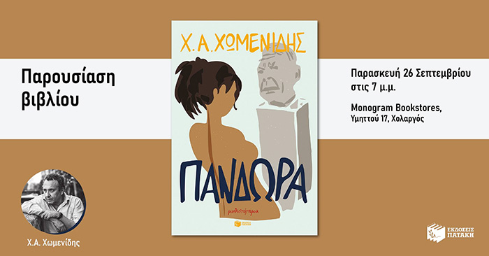 Αφορμή για τη συνάντηση, η οποία έχει προγραμματιστεί για την Παρασκευή 26 Σεπτεμβρίου στις 7 μ.μ., στο χώρο του βιβλιοπωλείου, είναι το βιβλίο του γνωστού συγγραφέα «Πανδώρα».