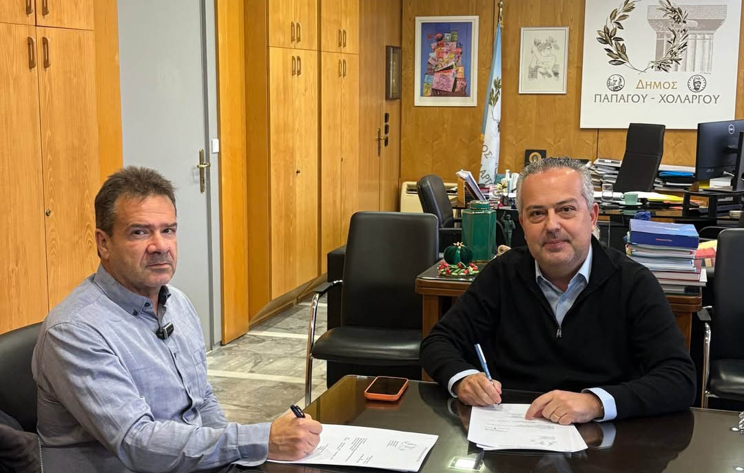 Ο Δήμαρχος Παπάγου – Χολαργού, Ηλίας Αποστολόπουλος προχώρησε στην υπογραφή σύμβασης του έργου ανακατασκευής δικτύου πεζοδρομίων, ύψους 368.927,90 ευρώ με τον εργολάβο που πριν λίγο καιρό ολοκλήρωσε το έργο της ανάπλασης της οδού Ζακυνθινού για την άρση επικινδυνότητας, στην Κοινότητα Παπάγου.