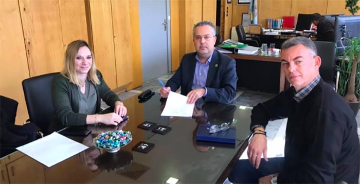 (φωτό αρχείου από την υπογραφή της σύμβασης για το έργο-ναυάγιο που ξεκίνησε αλλά δεν ολοκληρώθηκε με τον Δήμαρχο Ηλ. Αποστολόπουλο, τον τότε Αντιδήμαρχο Τεχνικών Έργων και Σχολείων Μ. Τράκα και την εκπρόσωπο της εργολαβικής εταιρίας).