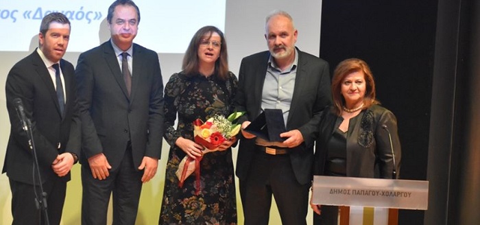 Η πλούσια και άρτια οργανωμένη εκδήλωση, που άλλωστε έχει συνηθίσει η δυναμική κυρία της Νέας Δημοκρατίας να προσφέρει στα μέλη και τους φίλους της τοπικής οργάνωσης, περιελάμβανε εκτός των άλλων και τη βράβευση επιφανών δημοτών. Από τον επιστημονικό τομέα βραβεύτηκε ο παγκοσμίου κύρους καθηγητής καρδιολογίας του Καποδιστριακού Πανεπιστημίου Αθηνών Χολαργιώτης κ. Κωνσταντίνος Τούτουζας. Από τον πνευματικό κόσμο ο χιλιοτραγουδισμένος μουσικοσυνθέτης Παπαγιώτης κ. Γιώργος Χατζηνάσιος και από τον επιχειρηματικό τομέα τα αδέλφια Ευαγγελία και Ηλίας Γεωργιόπουλοι, ιδιοκτήτες της μακροβιότερης επιχείρησης του Χολαργού Danaos Stores, που πρόσφατα παρά την περιπέτεια της εκτεταμένης πυρκαγιάς που υπέστη το κατάστημα κατάφεραν μέσα σε λίγες μέρες να ξανασταθούν στα πόδια τους.