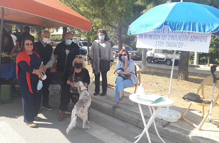 Οι κάτοικοι του Παπάγου που ανέλαβαν την πρωτοβουλία συζήτησαν και ενημέρωσαν όσους βρέθηκαν στη λαϊκή αγορά σε μία προσπάθεια ευαισθητοποίησης τους σχετικά με τη μείωση του συντελεστή δόμησης από 1 σε 0,9, όπως πρόσφατα υπερψήφισε το Δημοτικό Συμβούλιο.
