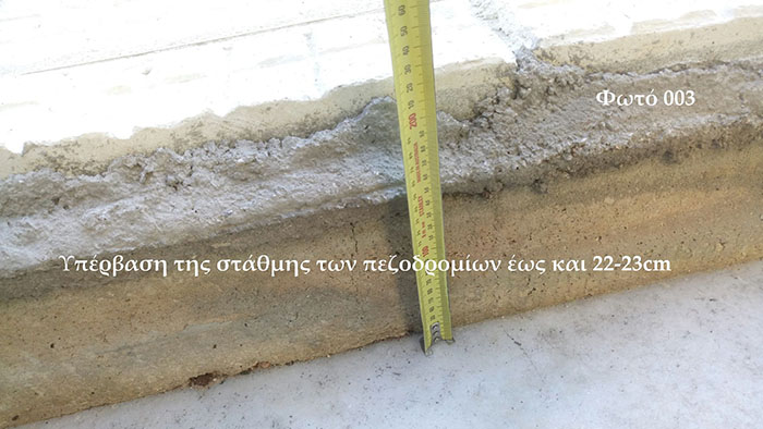 Με θαμμένες εισόδους και κυματιστά πεζοδρόμια λόγω εσφαλμένης ερυθράς από τις επαναλαμβανόμενες ασφαλτοστρώσεις στην διάρκεια των περασμένων χρόνων. Φωτό 003
