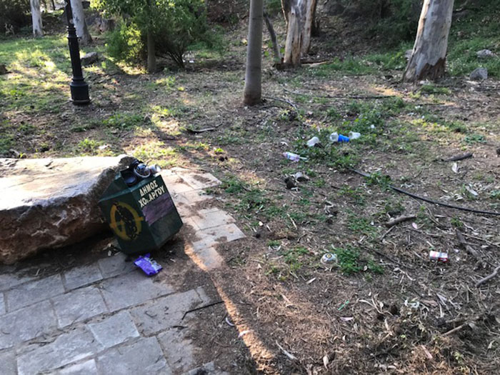 Μηνύματα και φωτογραφίες έφτασαν στο myxolargos/mypapagos.gr για την κατάσταση που βρίσκεται το πάρκο Ευρώπης πάνω από το τέρμα των λεωφορείων στον Άνω Χολαργό. Εγκατάλειψη με σπασμένα φωτιστικά και καλαθάκια, βρωμιά με σκουπίδια πεταμένα παντού και λόγω των ημερών και του επετειακού έτους και μία σημαία.