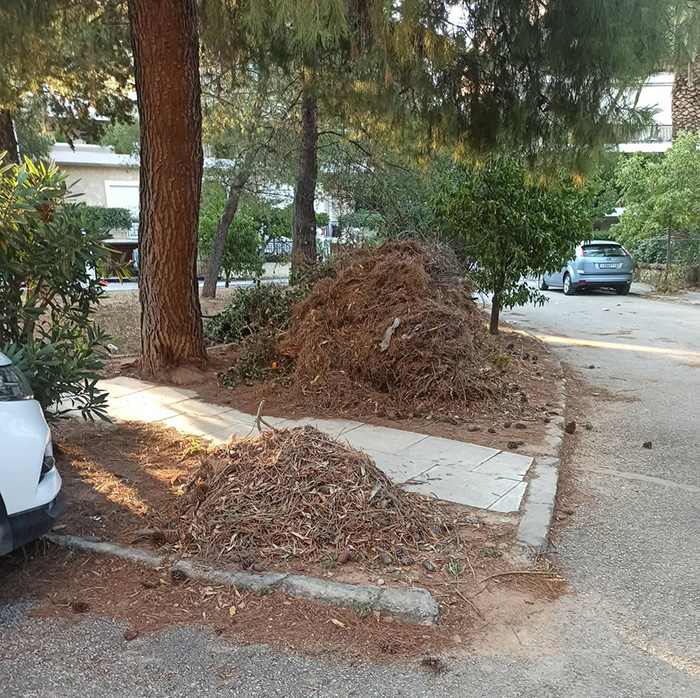 Έτσι σε πολλές γωνιές υπάρχουν στοίβες με ξερά χορτάρια αφημένα, να αποτελούν άμεσο κίνδυνο πυρκαγιάς ακόμη και πρόκληση για κάποιους.