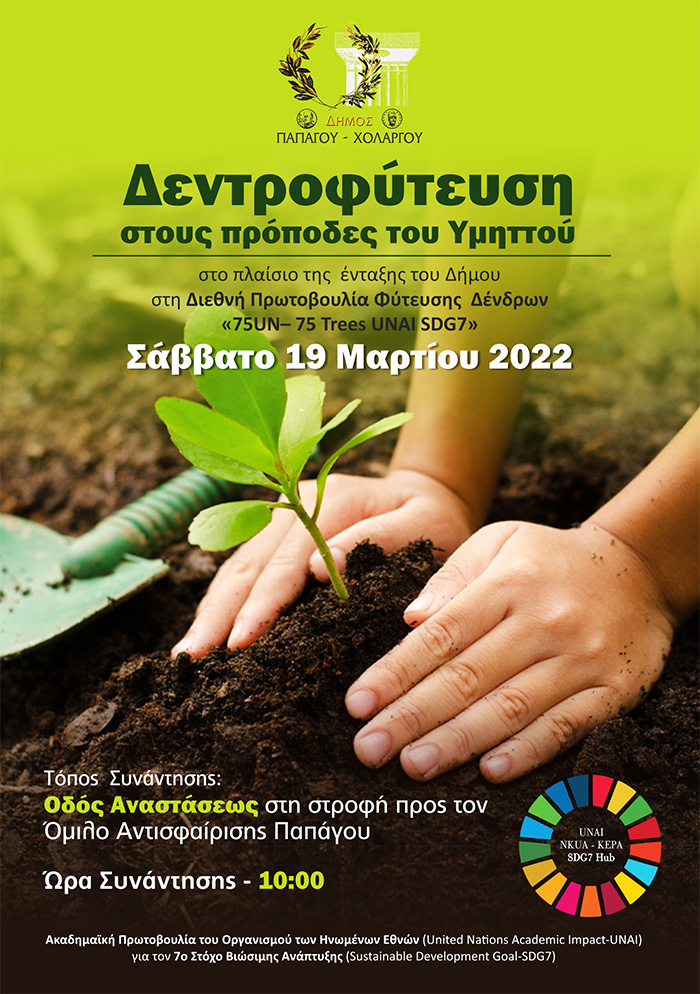 Ο Δήμος Παπάγου – Χολαργού διοργανώνει δενδροφύτευση στους πρόποδες του Υμηττού το Σάββατο 19 Μαρτίου 2022.