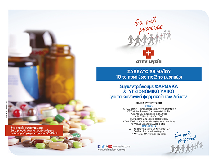 Ο Δήμος Παπάγου - Χολαργού σε συνεργασία με το «Όλοι Μαζί Μπορούμε», συγκεντρώνει φάρμακα και υγειονομικό υλικό για την κάλυψη αναγκών του Κοινωνικού Φαρμακείου του Δήμου.