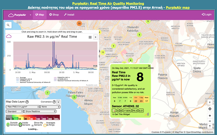 Οι μετρήσεις για τους ατμοσφαιρικούς ρύπους καταγράφηκαν μέσω του δικτύου Αιθέρας, που έχει