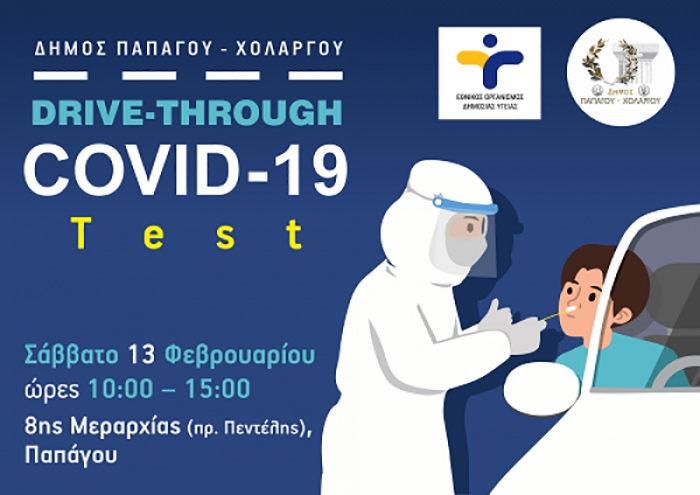 Ο Δήμος Παπάγου - Χολαργού σε συνεργασία με τον Εθνικό Οργανισμό Δημόσιας Υγείας, προχωρά στη διενέργεια drive through rapid tests, δωρεάν για τους κατοίκους της πόλης μας, το Σάββατο 13 Φεβρουαρίου 2021 και ώρες 10.00 έως 15.00, στην οδό 8ης Μεραρχίας Παπάγου (πρώην Πεντέλης).