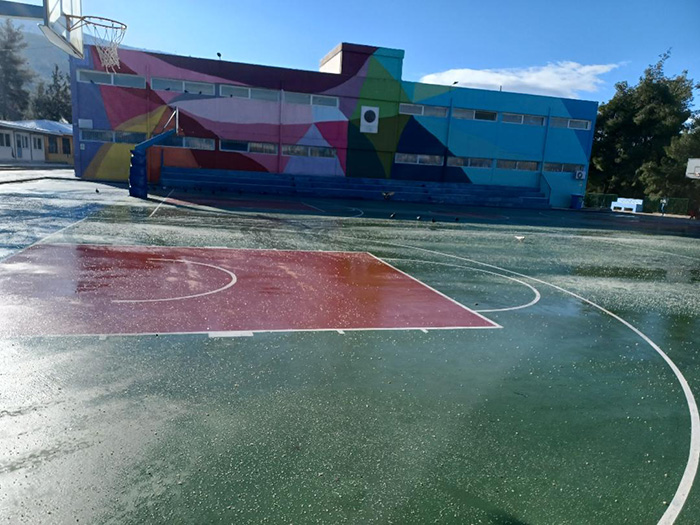 Μπορεί το μεγάλο έργο αναβάθμισης στο 1ο Λύκειο Χολαργού να... ναυάγησε, η αλλαγή όμως στη φυσιογνωμία του σχολείου, όπως φαίνεται, ολοκληρώθηκε. Μετά την αλλαγή στους χρωματισμούς της νεότερης πτέρυγας, στη μόνη που πρόλαβε να ολοκληρώσει κάποιες εργασίες στατικής ενίσχυσης ο εργολάβος, οι ελαιοχρωματισμοί που έγιναν εξωτερικά προκειμένου να "φρεσκαριστεί" το κτίριο, έσβησαν τα