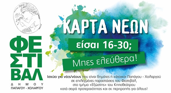 Εάν είσαι 16 -30 ετών και ζεις στο Δήμο μας μπορείς να αποκτήσεις την «Κάρτα Νέων» και να έχεις ΔΩΡΕΑΝ πρόσβαση σε επιλεγμένες παραστάσεις του 28ου Φεστιβάλ.